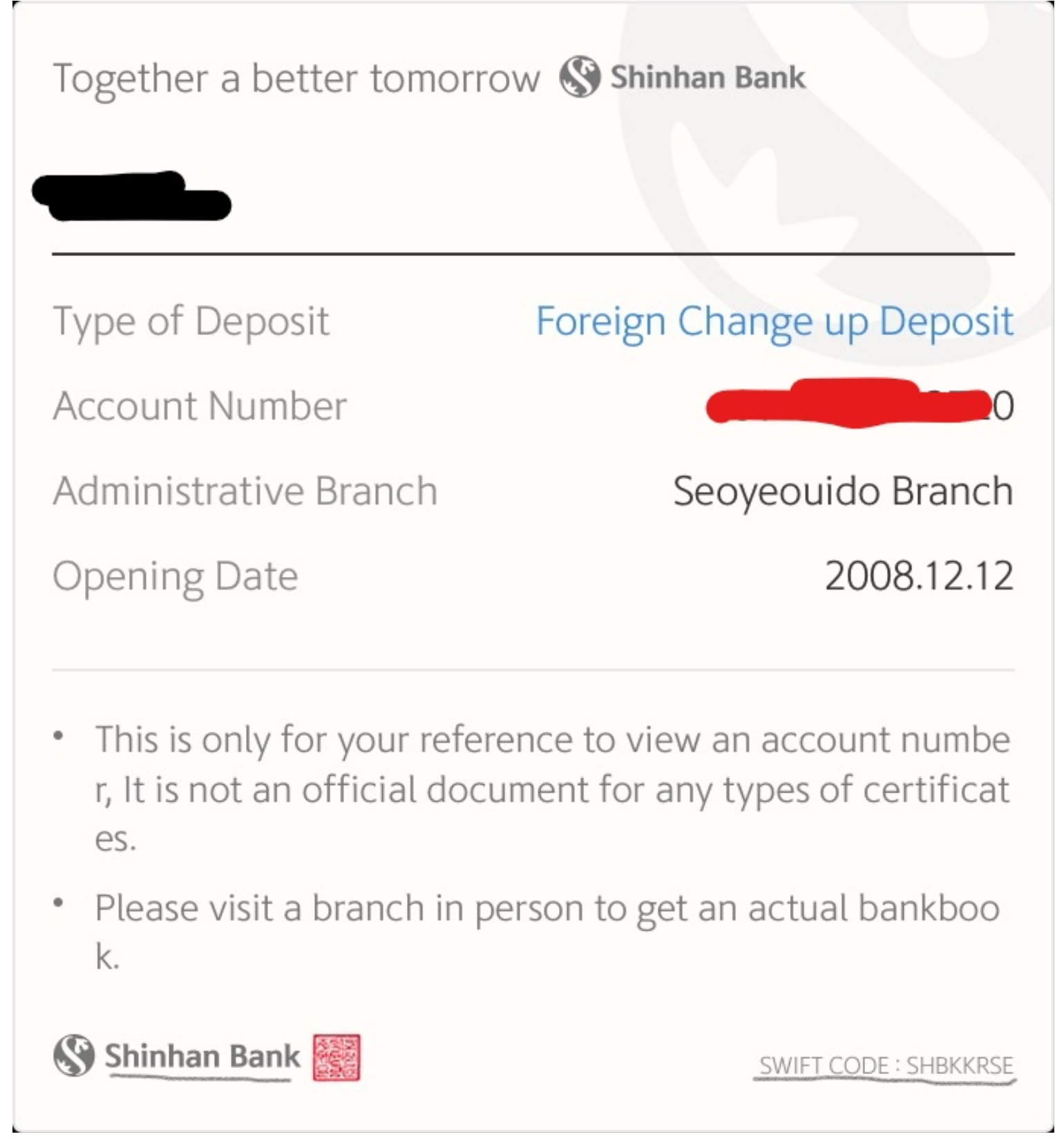신한은행 SWIFT CODE : SHBKKRSE