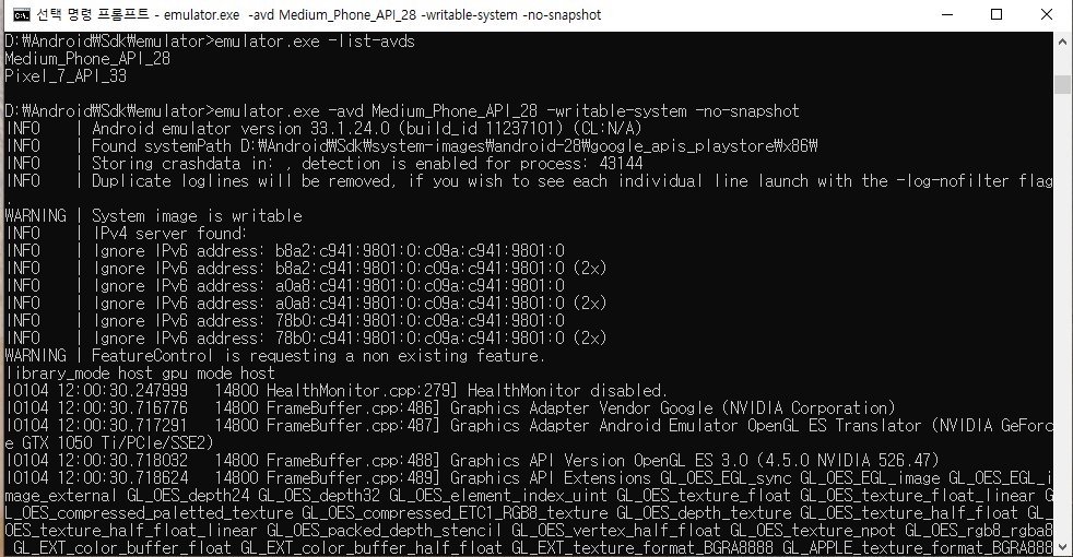 $ <Android-SDK-emulator>emulator.exe -avd Pixel_6_API_28 -writable-system -no-snapshot