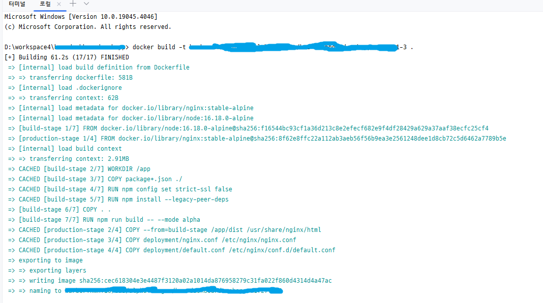 그리고 나서 다시 docker build 를 해보면 정상적으로 동작한다.