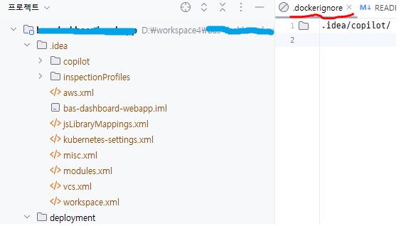 오늘 이글을 작성하는 3주전에 "taco-killchain" 이란 분이 해결책을 남겼는데, .dockerignore 파일을 생성하고 안에 copilot 디렉토리를 예외처리하면 된다. docker image 파일 생성할때 제외할 내용을 추가하는 거기 때문에, ".idea" 말고도 ".git/", "log/" 디렉토리를 추가해주자.