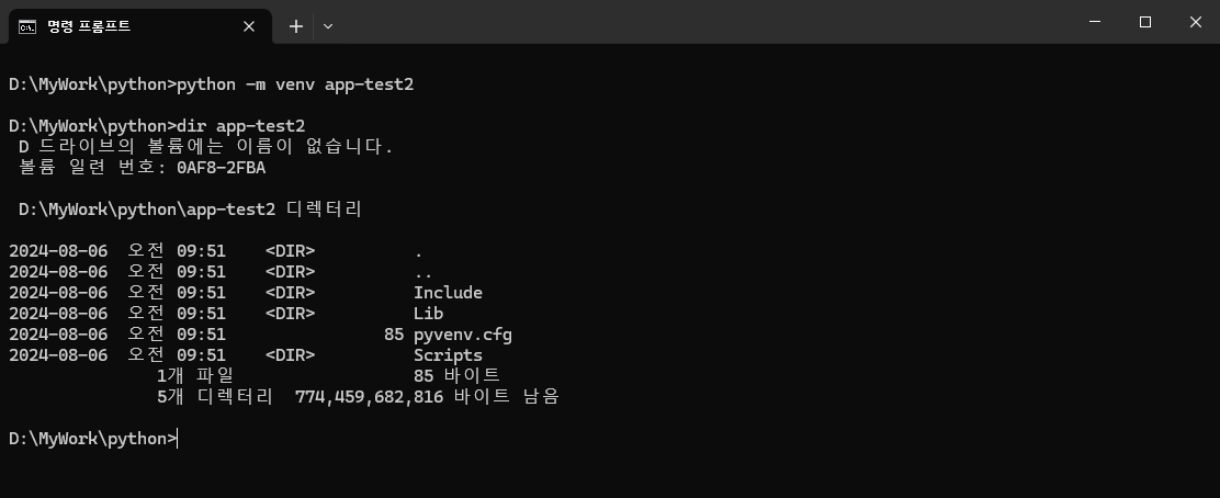 virtualenv 툴 말고도 가볍게 가상 환경을 생성하는 명령어 옵션은 "-m venv" 만으로 가능하다.