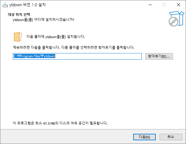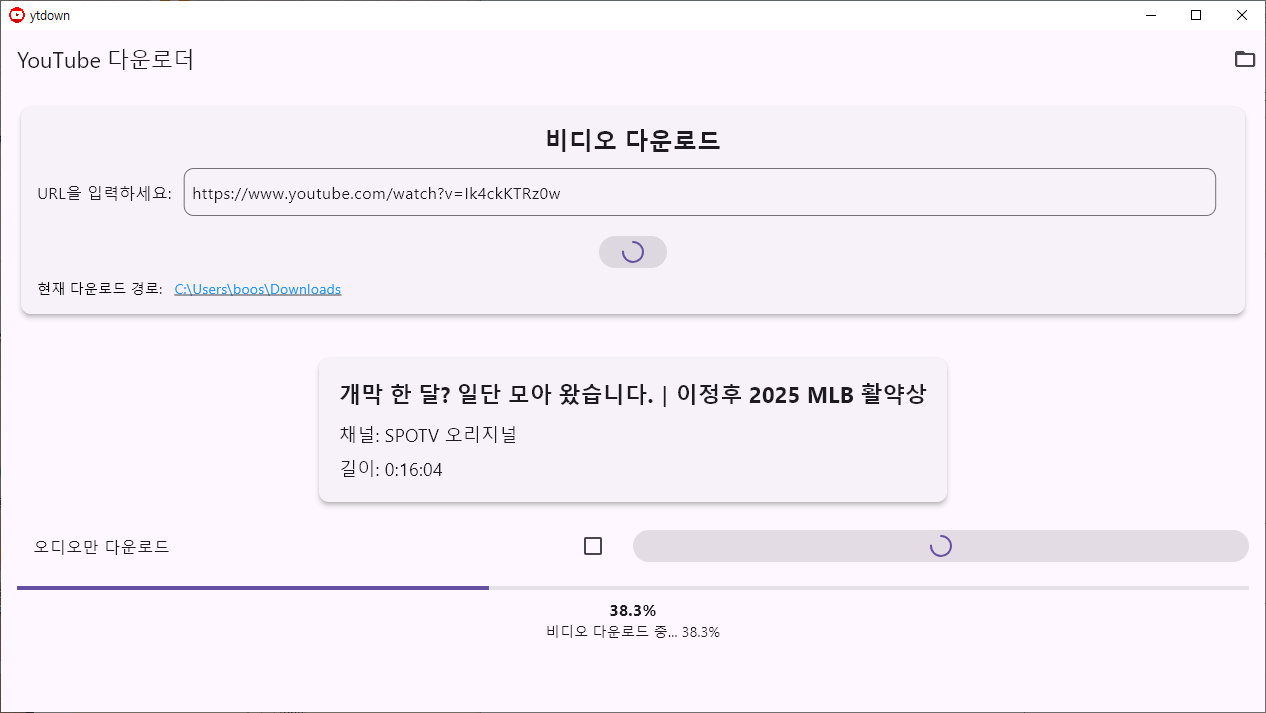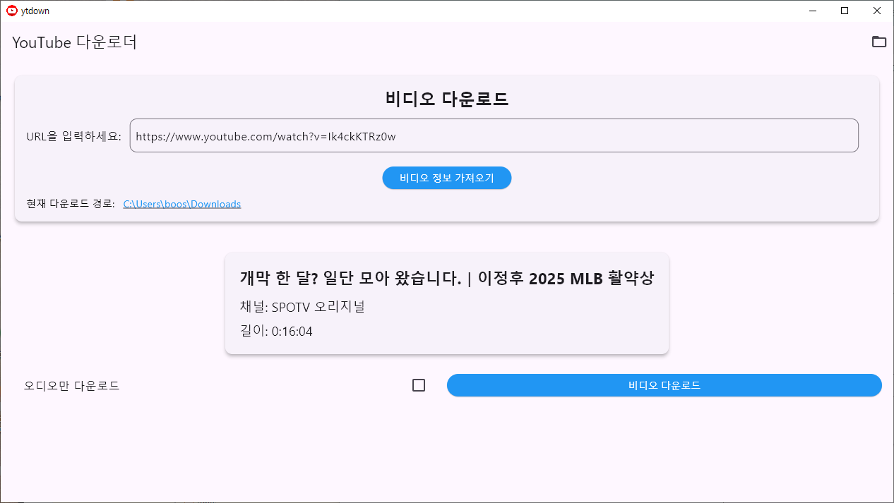 2. 프로그램 실행 (ytdown.exe) - 유튜브 영상 주소 입력