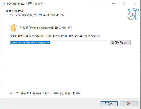 ★ 문서 생성 위치를 변경하려고 하면 오른쪽 상단의 다운로드 같은 아이콘을 클릭해서 변경할 수 있습니다.
