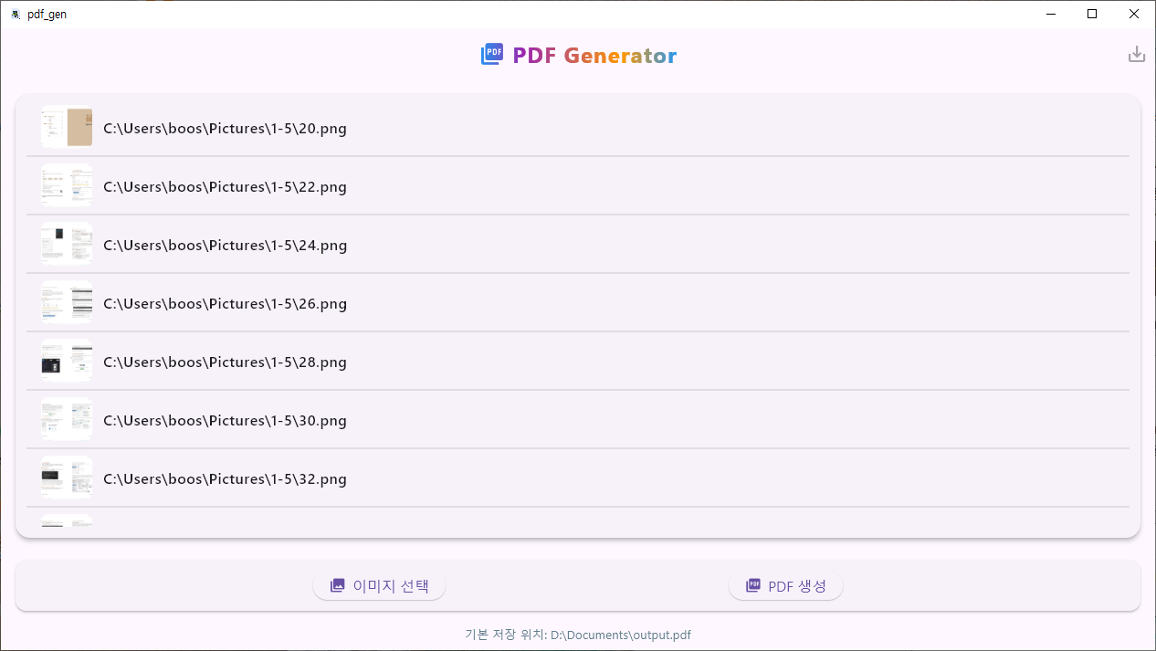 사진 파일들이 많아지니깐 관리가 안되서 하나의 pdf 로 담아둘려고 Cursor 로 윈도우 앱을 제작해 봤다.