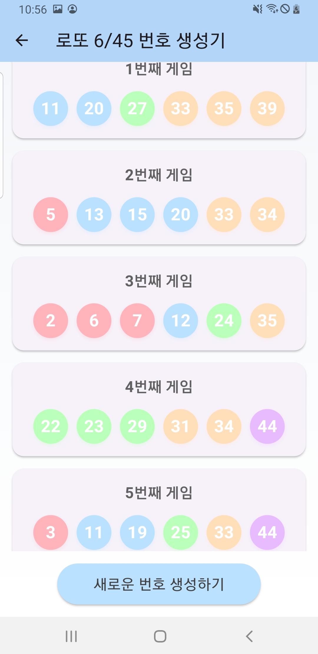 - 연금복권 번호 262회 2025년 5월 8일 추첨용 - 로또 6/451171회 2025년 5월 10일 추첨용 자체 개발한 앱으로 랜덤하게 숫자를 만들어 주는 번호로 매주 로또/연금복권을 사고 있는데 (만 5천원 정도 투자), 그래도 매주 로또 5등, 연금복권 7등은 나오고 있다. 다음주도 잘 되면 좋겠구만... 2025년 5월 10일 1171회 로또 당첨 결과다행히 5등 당첨. 2025년 5월 8일 262회 연금복권 결과1만원 어치 샀지만, 당첨 실패15000 원을 투자해서 5000 원 당첨함. (33%)